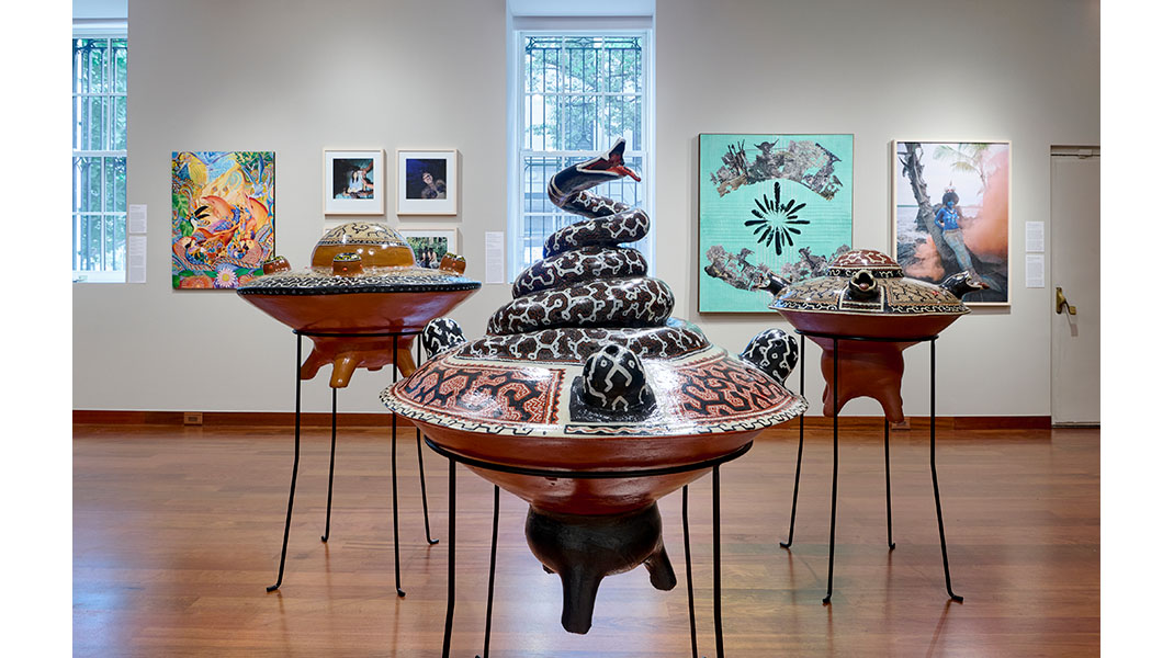 “Very much like Amazonia, the exhibition is not self-contained. It is a space of openness, interconnection, and meeting. Each work selected, each narrative constructed, carries within itself a story that adds to other stories, creating a collective quilt,” said Eleison. “The curators, all from different Amazonian territories, are more than art mediators; they are guardians of their cultures, histories, and worldviews. They invite us to look beyond stereotypes of the Amazon, listen to its deeper tones, connect ourselves with its subtler layers.”
